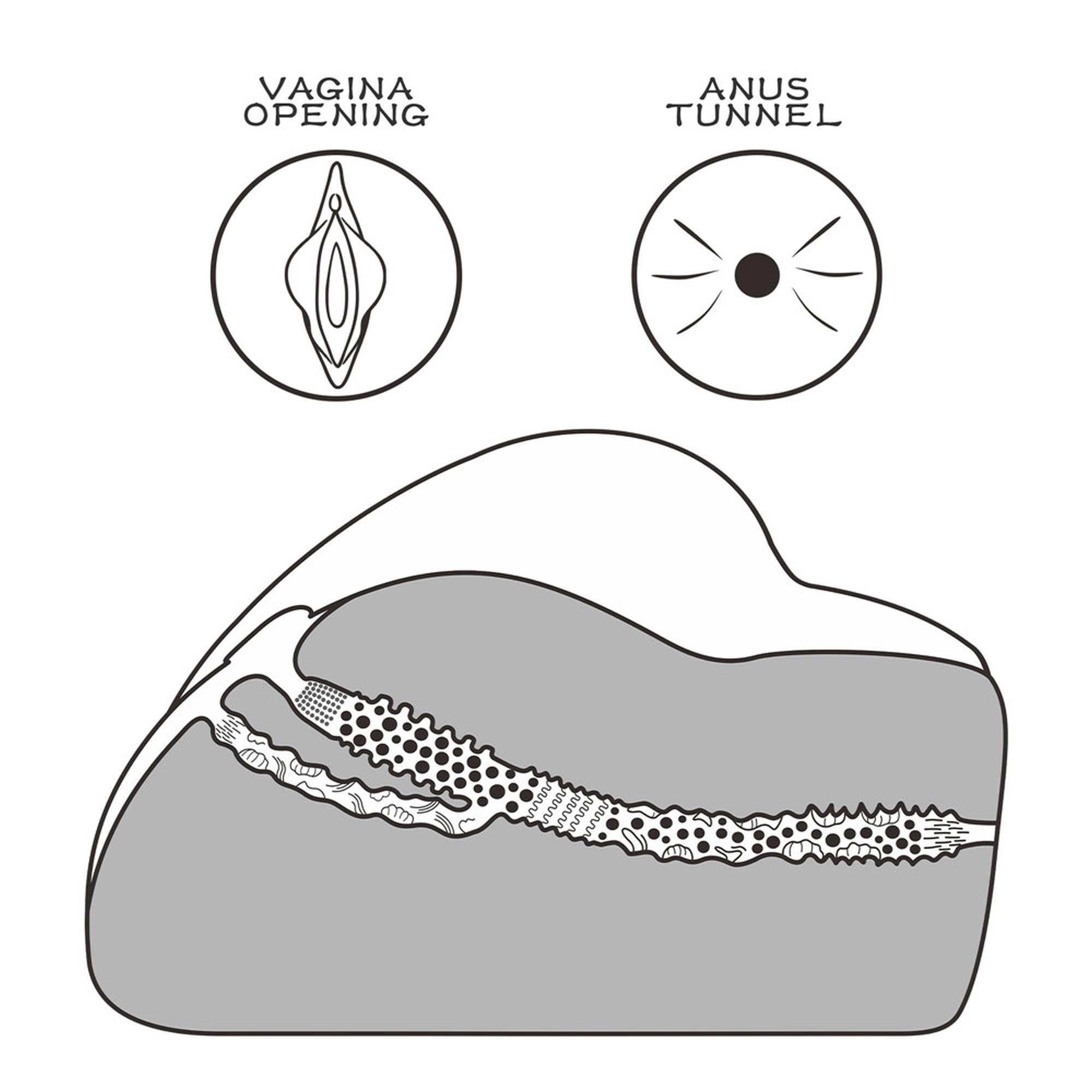 - Kanał pochwy — ciasna szparka z rozłożonymi, różowymi wargami sromowymi prowadzi do wnętrza pełnego licznych prążków, które precyzyjnie masują penisa przy każdym ruchu. Kompaktowy rozmiar oznacza ciasne wnętrze, które mocno obejmuje trzon od wejścia do samego końca.